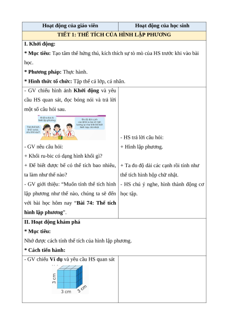 BÀI 74: THỂ TÍCH HÌNH LẬP PHƯƠNG (1 tiết)