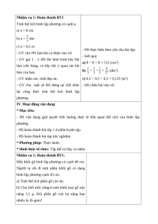 - HS vận dụng giải quyết tình huống thực tế liên quan thể tích của hình lập phương.