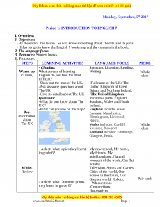 Period 1: INTRODUCTION TO ENGLISH 7 I. Overview: 1. Objectives: