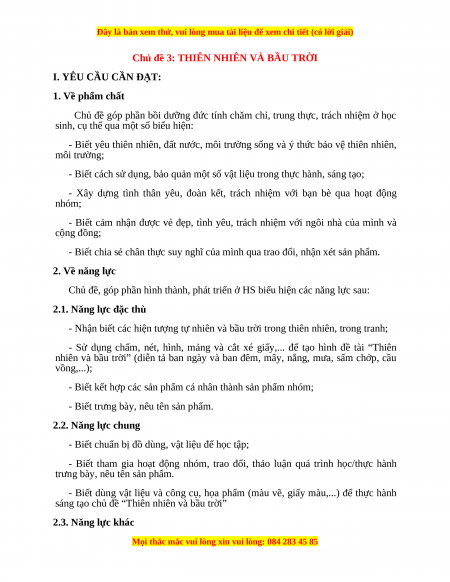 Chủ đề 3: THIÊN NHIÊN VÀ BẦU TRỜI