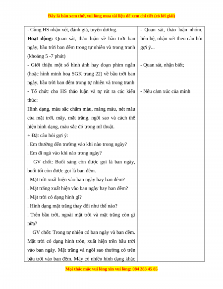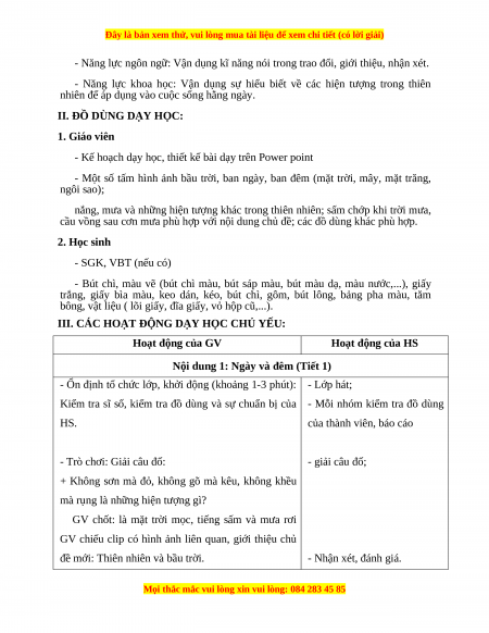 Nội dung 1: Ngày và đêm (Tiết 1)