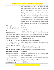 Bước 1: Chuyển giao nhiệm 1. Thơ Đường luật và một số yếu tố trong thơ vụ Đường luật - HS trả lời câu hỏi: