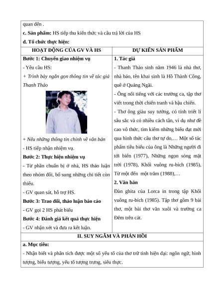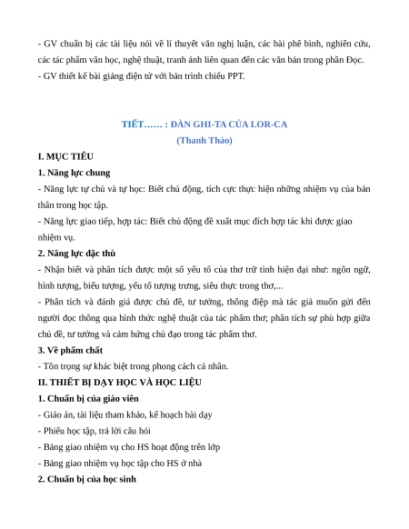 TIẾT…… : ĐÀN GHI-TA CỦA LOR-CA (Thanh Thảo) I. MỤC TIÊU 1. Năng lực chung