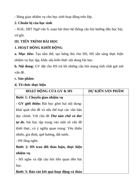 Bước 1: chuyển giao 1. Thơ tám chữ, thơ tự do nhiệm vụ