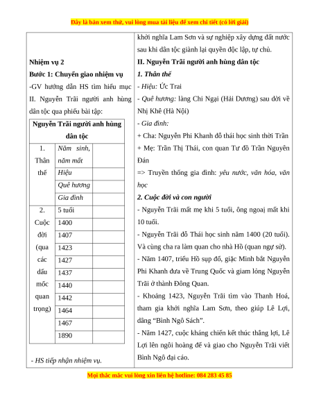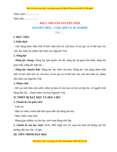 NGUYỄN TRÃI – CUỘC ĐỜI VÀ SỰ NGHIỆP Tiết:…… I. MỤC TIÊU 1. Kiến thức