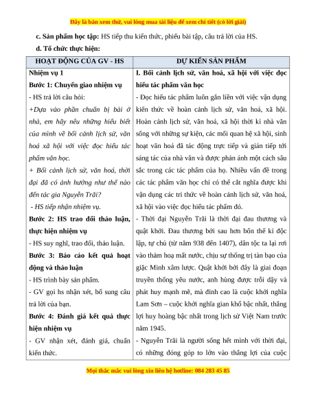 +Dựa vào phần chuẩn bị bài ở kiến thức về hoàn cảnh lịch sử, văn hoá, xã hội.