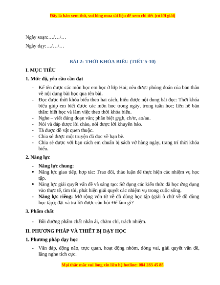 BÀI 2: THỜI KHÓA BIỂU (TIẾT 5-10)
