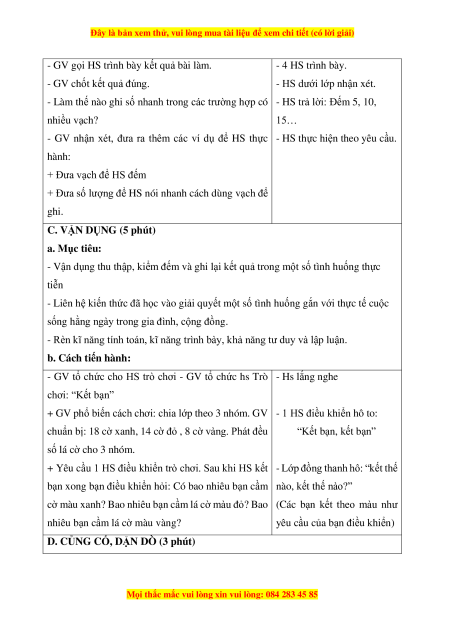 - Vận dụng thu thập, kiểm đếm và ghi lại kết quả trong một số tình huống thực tiễn.