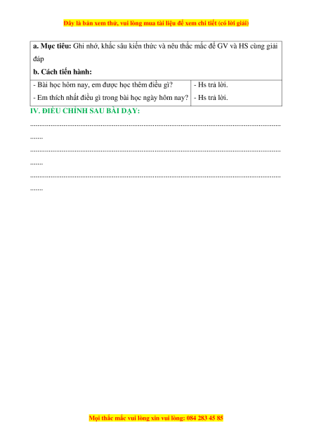 IV. ĐIỀU CHỈNH SAU BÀI DẠY: