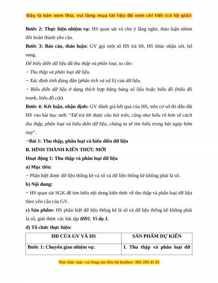 Hoạt động 1: Thu thập và phân loại dữ liệu a) Mục tiêu: