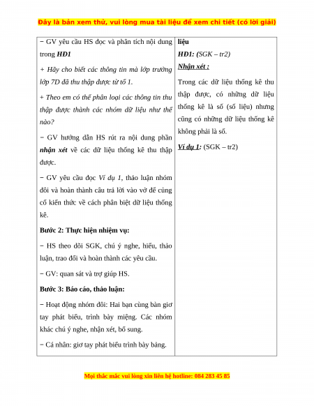 − Phân biệt được dữ liệu thống kê và số và dữ liệu thống kê không phải là số. b) Nội dung:
