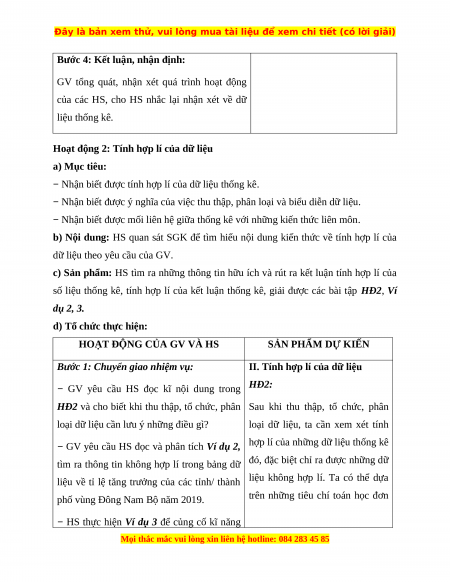 Hoạt động 2: Tính hợp lí của dữ liệu