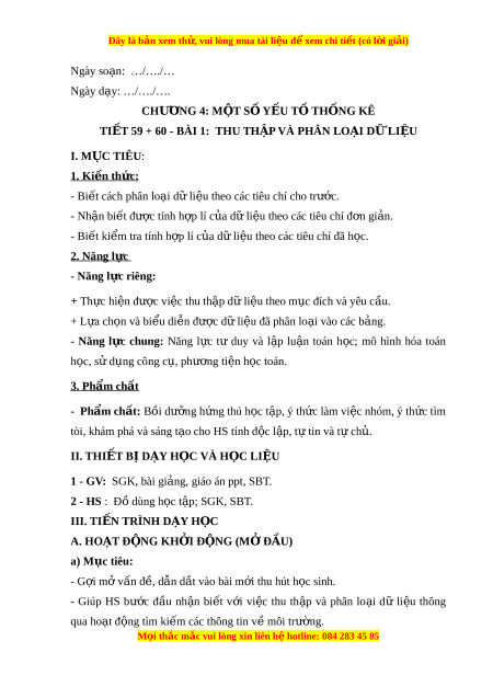 Đây là bản xem th , vu ử i lòng mua tài li u ệ đ xe ể m chi ti t ế (có l i ờ gi i ả ) Ngày so n: ạ …/…./… Ngày d y: ạ …/…./…. CHƯ N Ơ G 4: M T Ộ S Ố Y U Ế T Ố TH N Ố G KÊ TI T