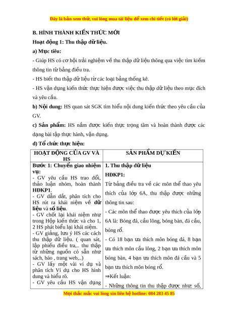 d) Tổ chức thực hi n: ệ HOẠT Đ N Ộ G C A Ủ GV VÀ SẢN PHẨM D K Ự I N Ế HS Bư c ớ 1: Chuy n ể giao nhi m ệ 1. Thu th p d ậ l ữ i u ệ v : ụ HĐKP1: - GV yêu c u ầ HS trao đ i ổ , th o ả lu n