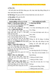 ệ heo các tiêu chí đã h c. ọ 2. Năng l c ự - Năng l c ri ự êng: + Th c ự hi n đ ệ ư c ợ vi c t ệ hu th p d ậ l ữ i u t ệ heo m c đí ụ ch và yêu c u. ầ + L a ự ch n và bi ọ u di ể n đ ễ ư c ợ d l ữ i u đã phân l ệ o i ạ vào các b ng. ả - Năng l c ự chung: Năng l c ự tư duy và l p ậ lu n ậ toán h c; ọ mô hình hóa toán h c, s ọ ử d ng công c ụ , ụ phư ng t ơ i n h ệ c t ọ oán. 3. Ph m ẩ chất - Phẩm ch t ấ : Bồi dư ng h ỡ ng t ứ hú h c ọ t p, ý t ậ h c l ứ àm vi c nhóm ệ , ý th c t ứ ìm