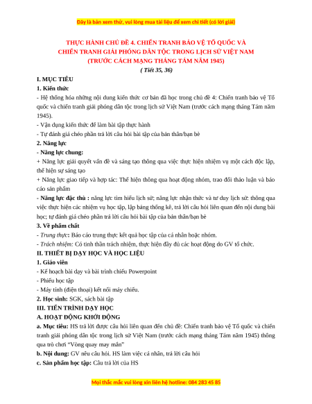 THỰC HÀNH CHỦ ĐỀ 4. CHIẾN TRANH BẢO VỆ TỔ QUỐC VÀ