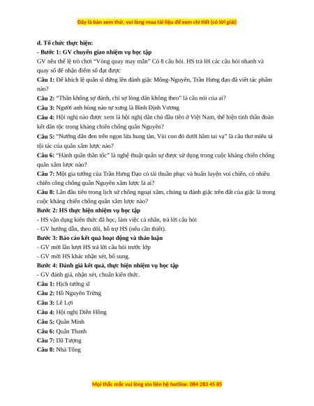 Câu 4: Hội nghị Diên Hồng Câu 5: Quân Minh Câu 6: Quân Thanh Câu 7: Dã Tượng Câu 8: Nhà Tống