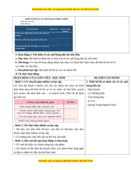 lịch, poster, thẻ nhớ nhân vật…. và thuyết trình. Tiêu chí để đánh - Lý Thường Kiệt giá như sau: - Trần Hưng Đạo - Lê Lợi