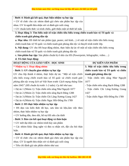 - Hệ thống hóa những nội dung kiến thức cơ bản đã học trong chủ đề 4: Chiến tranh bảo vệ Tổ