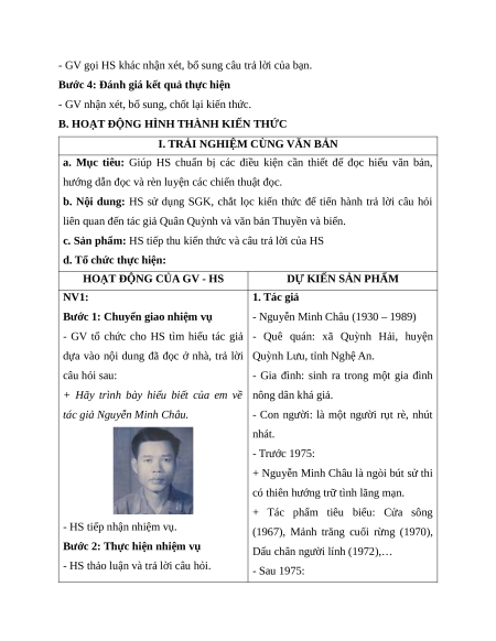 - GV tổ chức cho HS tìm hiểu tác giả 2. Văn bản
