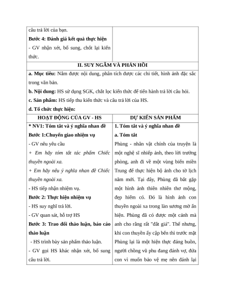 - Năng lực trình bày suy nghĩ, cảm nhận của cá nhân về văn bản Chiếc thuyền ngoài xa.