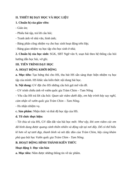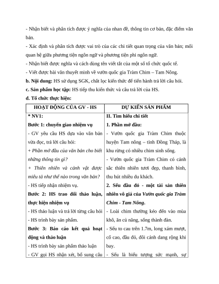 - Viết được bài văn thuyết minh về vườn quốc gia Tràm Chim – Tam Nông. 2. Năng lực a. Năng lực chung