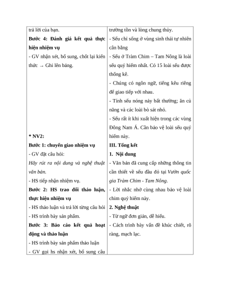 - Viết được bài văn thuyết minh về vườn quốc gia Tràm Chim – Tam Nông.