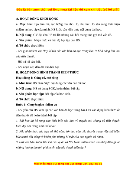 - Ôn tập nội dung kiến thức Bài 1: Khả năng lớn lao của tiểu thuyết