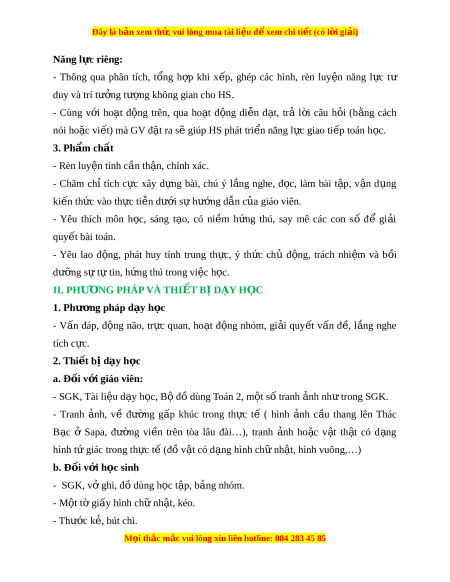 ặ ra sẽ giúp HS phát tri n năng l ể c ự giao ti p t ế oán h c. ọ 3. Phẩm ch t ấ - Rèn luy n t ệ ính c n t ầ h n, chí ậ nh xác. - Chăm chỉ tích c c ự xây d ng ự bài, chú ý l ng ắ nghe, đ c, ọ làm bài t p, ậ v n ậ d ng ụ ki n t ế h c ứ vào th c t ự i n d ễ ư i ớ s h ự ư ng d ớ n c ẫ a ủ giáo viên. - Yêu thích môn h c, ọ sáng t o, ạ có ni m ề h ng
