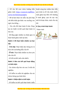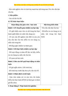 ngót, dây khoai lang,…) và giá th tr ể ng cây. ồ III. TI N TRÌNH D Ế Y H Ạ C Ọ 1. Ho t đ ạ ng 1: Kh ộ i ở đ ng (M ộ đ ở u) ầ a) M c tiêu: ụ - T o h ạ ng thú h ứ c t ọ ập cho học sinh. - H c sinh trình bày đ ọ c yêu c ượ u c ầ n đ ầ t c ạ a bài th ủ c hành. ự b) N i dung: ộ - HS tr l ả i các câu h ờ i c ỏ a G ủ V đ tìm hi ể u khái quát bài th ể c hành. ự