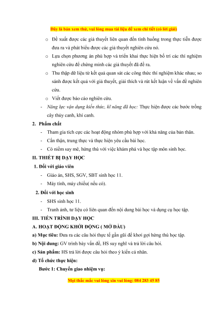 - Thực hiện được các bài thực hành về thủy canh, khí canh. 1. Năng lực Năng lực chung: