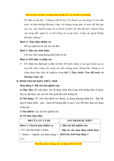 Giáo án Thực hành: Thí nghiệm trao đổi nước ở thực vật và trồng cây bằng thủy canh, khí canh Sinh học 11 Chân trời sáng tạo