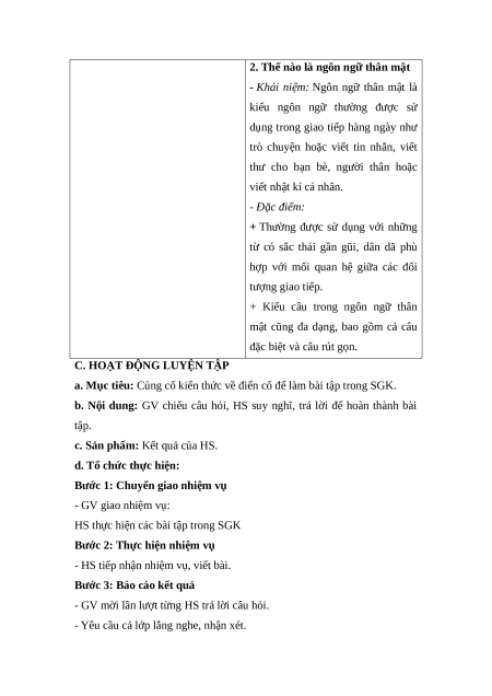 thân mật rồi bài học hôm nay chúng ta tiếp tục củng cố thêm về đơn vị kiến thức này.