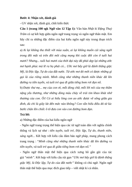 - Phân biệt và biết cách sử dụng ngôn ngữ trang trọng và ngôn ngữ thân mật trong giao tiếp. 3. Về phẩm chất