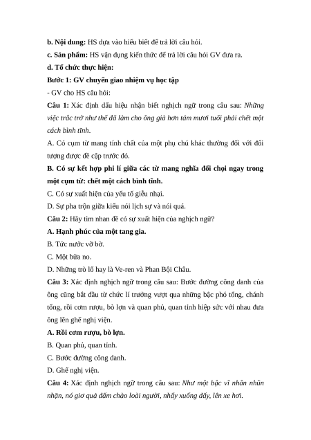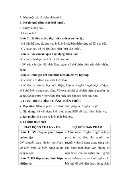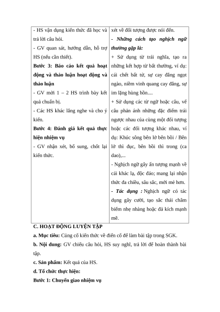 - GV dẫn dắt vào bài học mới: Biện pháp tu từ nghịch ngữ được sử dụng