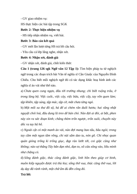 Giáo án Thực hành tiếng Việt trang 126 Ngữ Văn 12 Cánh diều