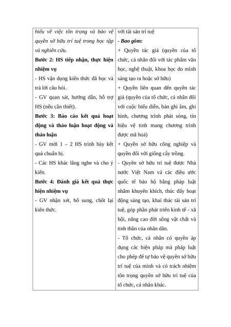 Bước 1: GV chuyển giao nhiệm - Khái niệm: Quyền sở hữu trí tuệ vụ học tập