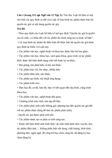 - Các HS khác lắng nghe và cho ý - Quyền sở hữu trí tuệ được Nhà kiến.