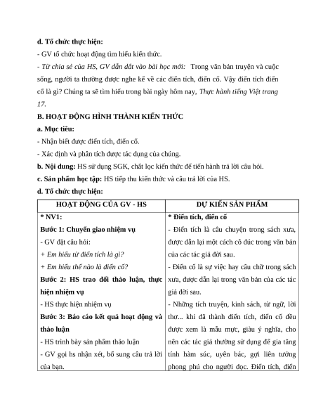 - Xác định và phân tích được tác dụng của điển tích, điển cố. 2. Năng lực a. Năng lực chung