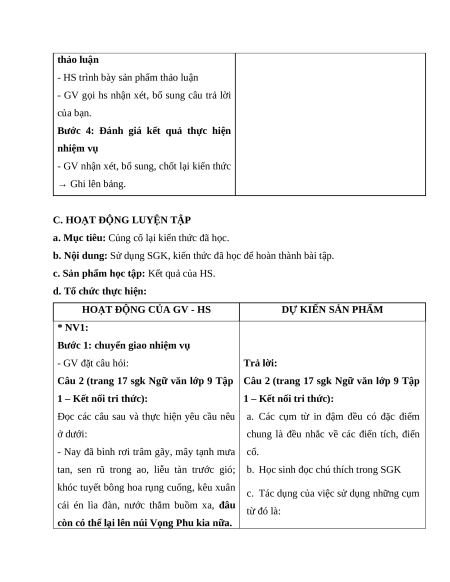 Giáo án Thực hành tiếng Việt trang 17 Ngữ Văn 9 Kết nối tri thức