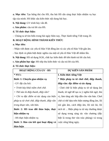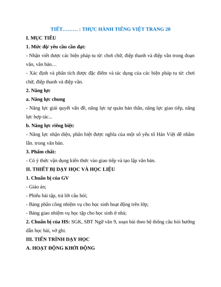 TIẾT……… : THỰC HÀNH TIẾNG VIỆT TRANG 20 I. MỤC TIÊU