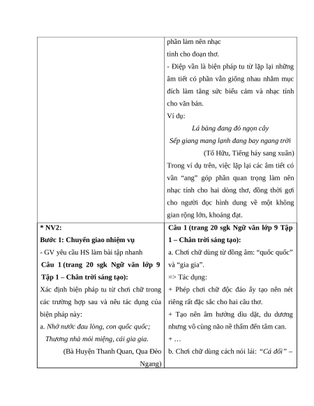 Câu 1 (trang 20 sgk Ngữ văn lớp 9 và “gia gia”.