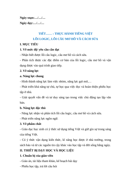 - Nhận biết được lỗi câu logic, câu mơ hồ và cách sửa.