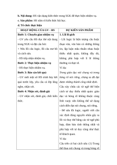 - HS thực hiện nhiệm vụ. Ví dụ: