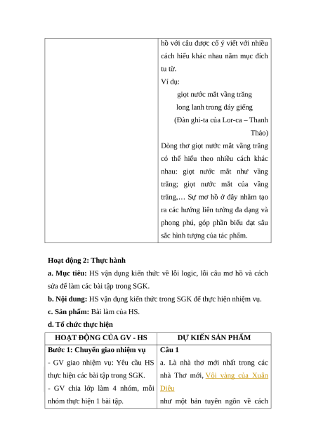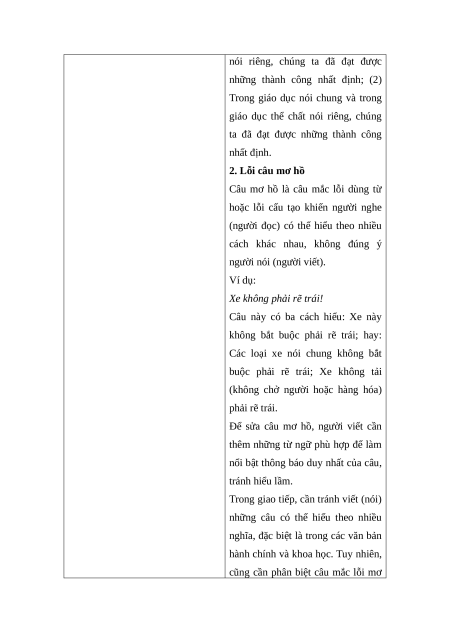 - Năng lực nhận và phân tích lỗi câu logic, câu mơ hồ và cách sửa.