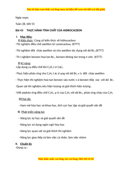 Bài 43 THỰC HÀNH TÍNH CHẤT CỦA HIĐROCACBON I. M ục tiêu: 1) K