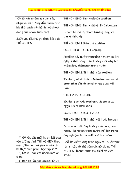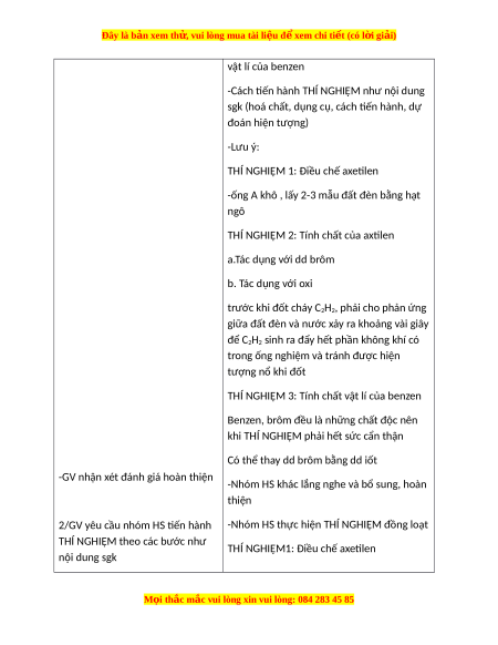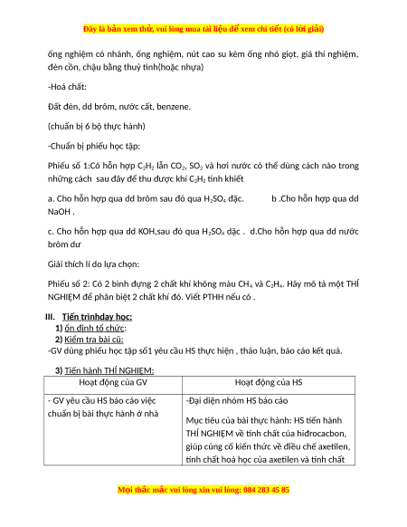 sgk (hoá chất, dụng cụ, cách tiến hành, dự đoán hiện tượng) -Lưu ý: