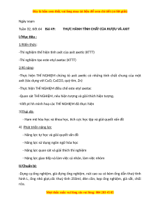 Giáo án Thực hành: Tính chất của rượu và axit Hóa học 9
