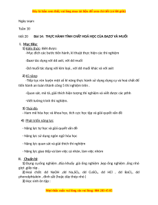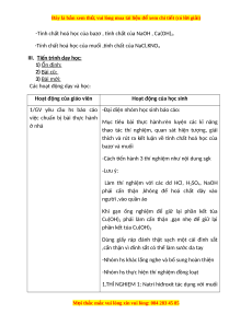 tiết 20 Bài 14: THỰC HÀNH TÍNH CHẤT HOÁ HỌC CỦA BAZƠ VÀ MUỐI I. M ục tiêu: 1) K