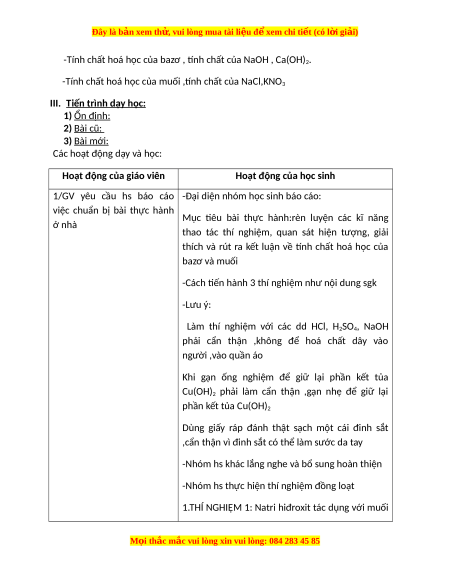 1.THÍ NGHIỆM 1: Natri hiđroxit tác dụng với muối M i ọ thắc m c